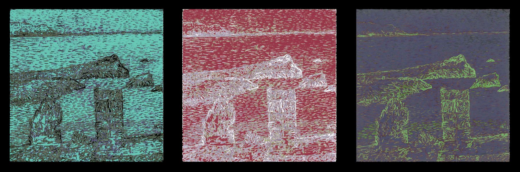 Κατά καιρούς έχει πειραματιστεί με έργα βασισμένα στην ψηφιακή τεχνολογία: ψηφιακά επεξεργασμένες και τυπωμένες φωτογραφίες αλλά και εικόνες που βασίστηκαν σε ψηφιακή επεξεργασία υπαρχόντων έργων ή σχεδίων του. Λίγα από αυτά, αποτέλεσαν κομμάτια της σειράς «365». Συχνά πειραματίζεται κάνοντας παραλλαγές με βοηθό την ψηφιακή τεχνολογία. Χρησιμοποιεί επίσης τα ψηφιακά μέσα για να μελετά πιθανές χρωματικές η συνθετικές παραλλαγές αλλά και να εμπλουτίζει τον τρόπο θέασης της πραγματικότητας.