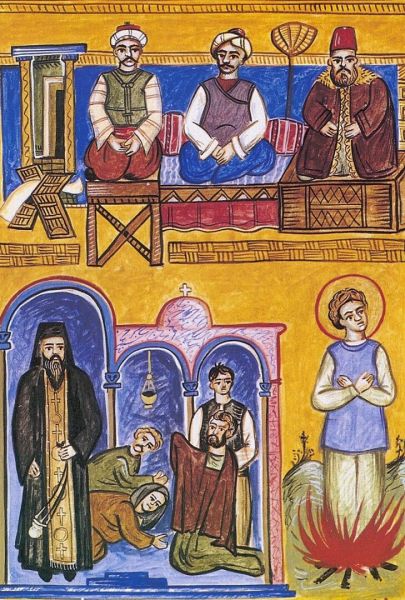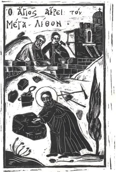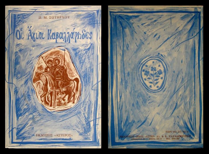Παν.Σωτήρχου Οι Άγιοι Καβαλλάρηδες. Εκδόθηκε το 1995, η εικονογράφηση έγινε με ξυστά σχέδια με μελάνι σε χαρτόνι.