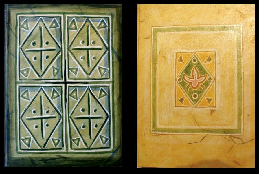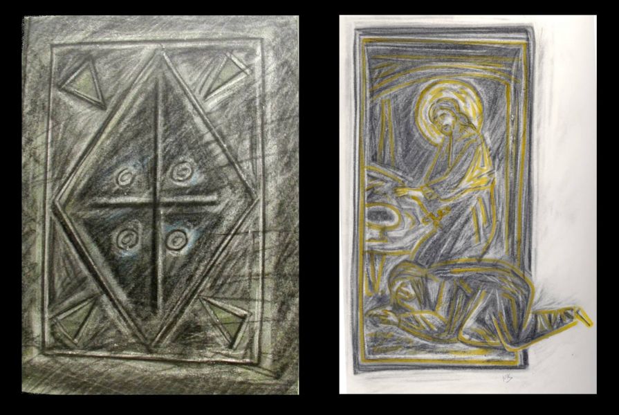 Σχέδια με κάρβουνο και παστέλ, ξυστά σχέδια, πρωτογράμματα.