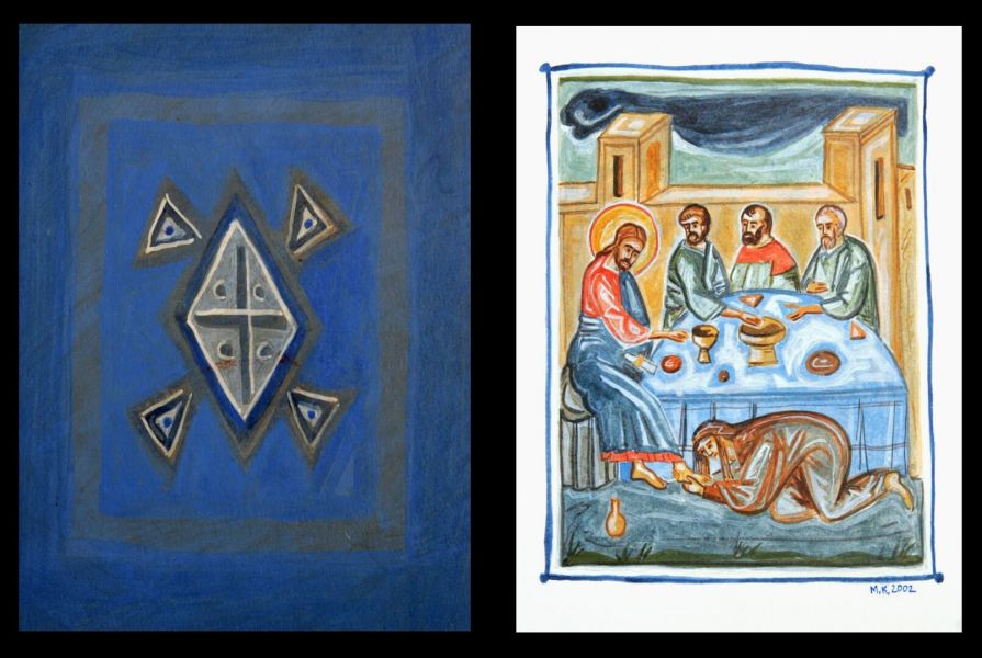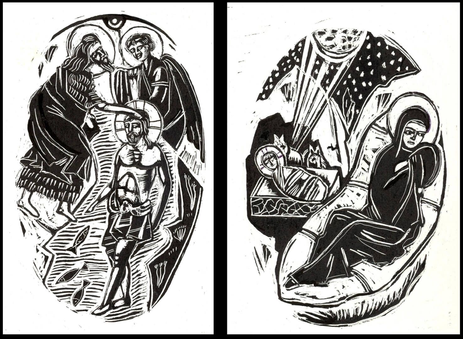 Ο Ευαγγελιστής Ματθαίος ως σταχωτής, χαρακτική σε λινόλαιο, 1999.