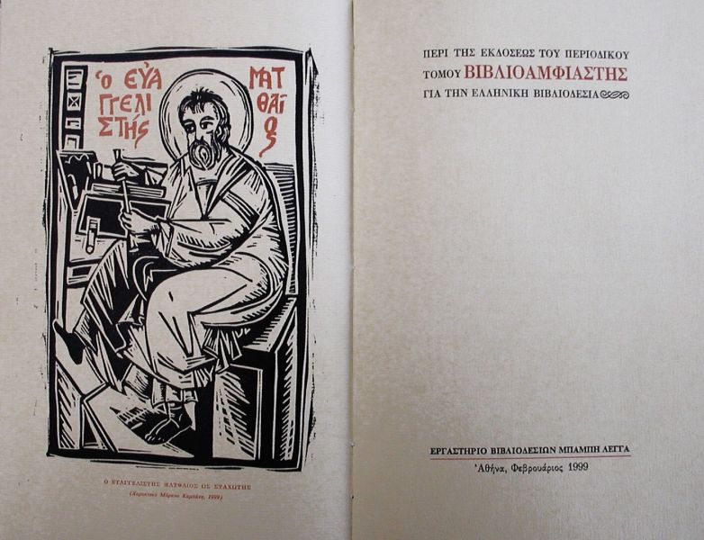 Βιβλιοαμφιάστης, Εργαστήριο Βιβλιοδεσιών Μπάμπη Λέγγα, Αθήνα 1999.