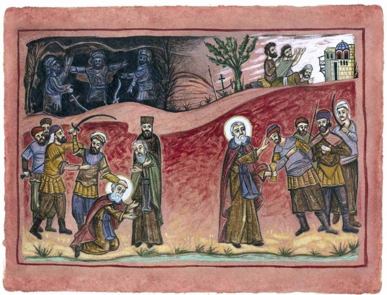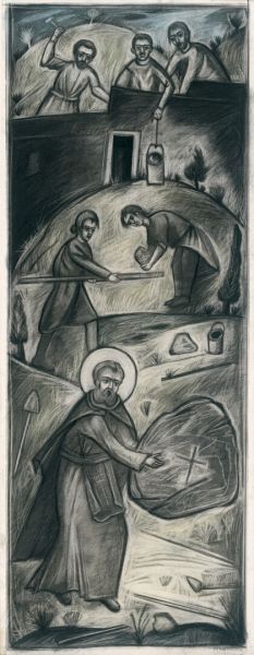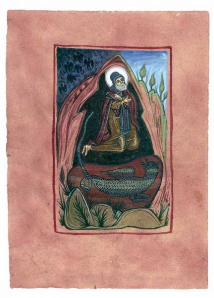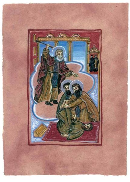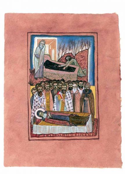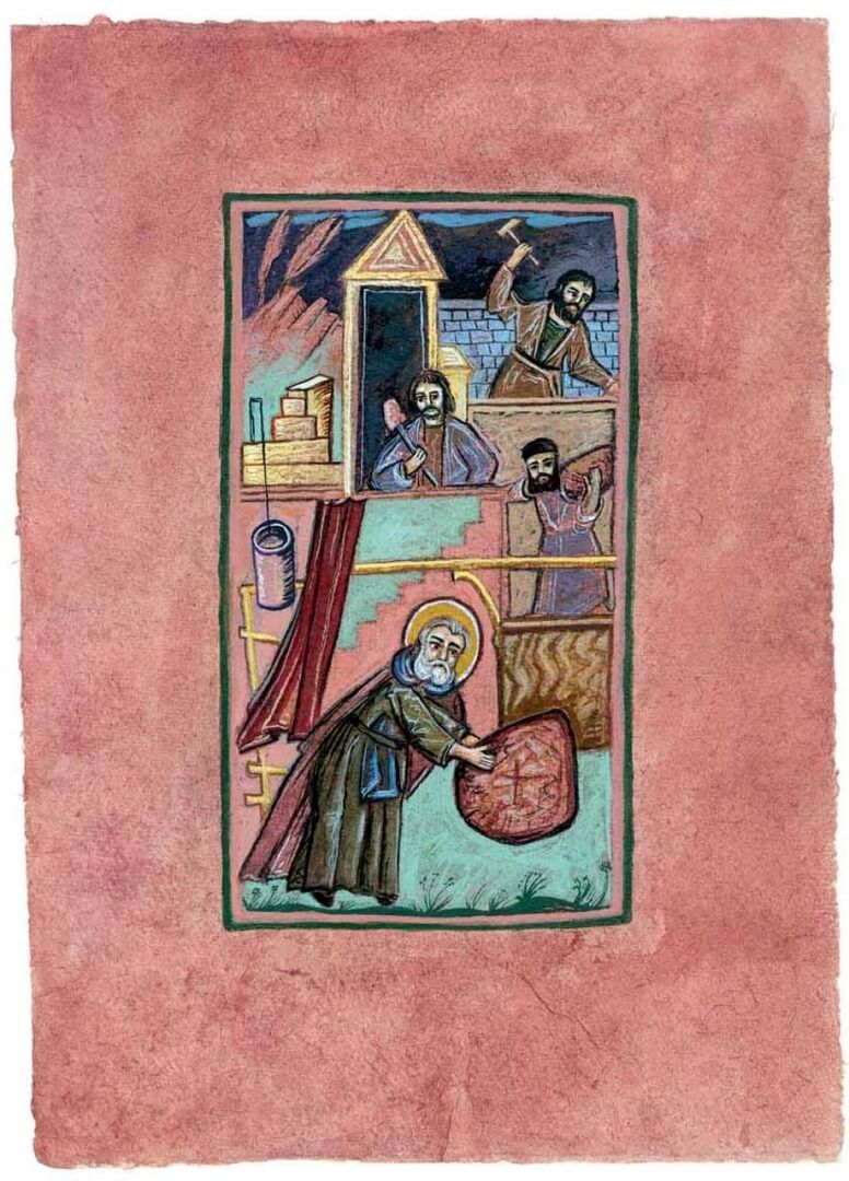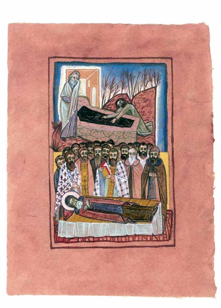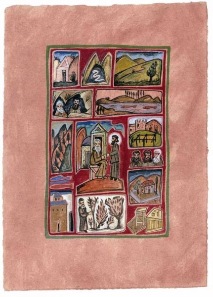 Εικονογράφηση του βιβλίου Αγίου Σίμωνος Βίος και πολιτεία, σε κείμενο Γαβριήλ Νικολάου Πεντζίκη. Έκδοση της Ι.Μ. Σίμωνος Πέτρας του Αγίου Όρους το 2000. Τα έργα έγιναν με ακρυλικό χρώμα σε χειροποίητο χαρτί Khadi, διαστάσεων 39x28 και 39x55 εκ.
