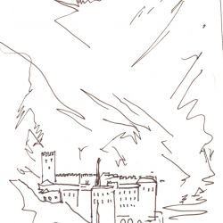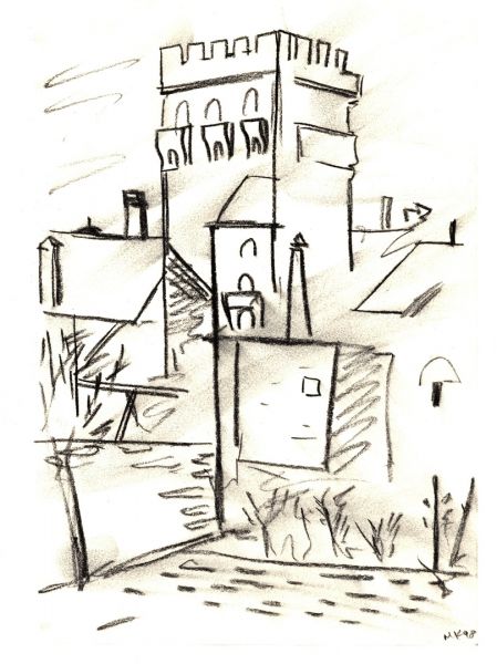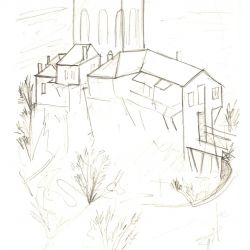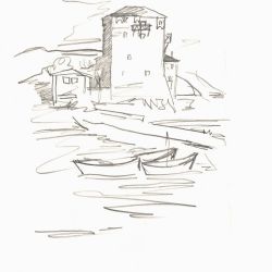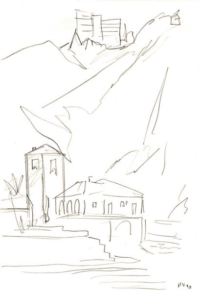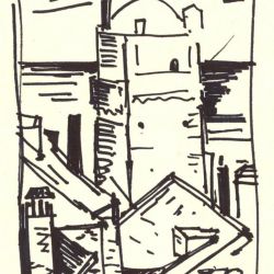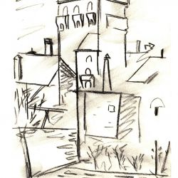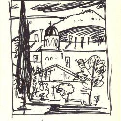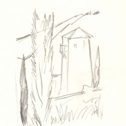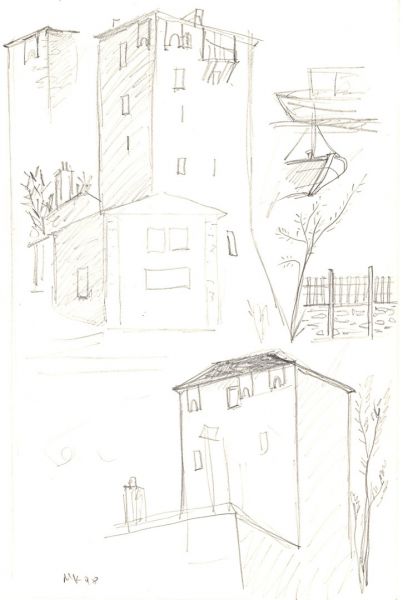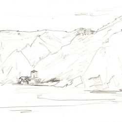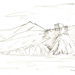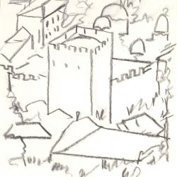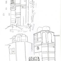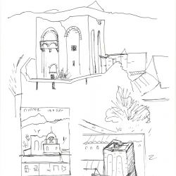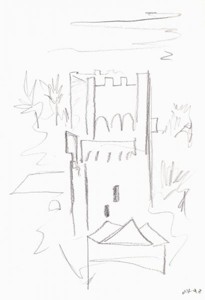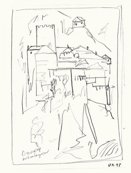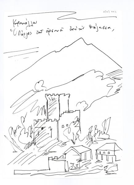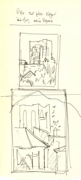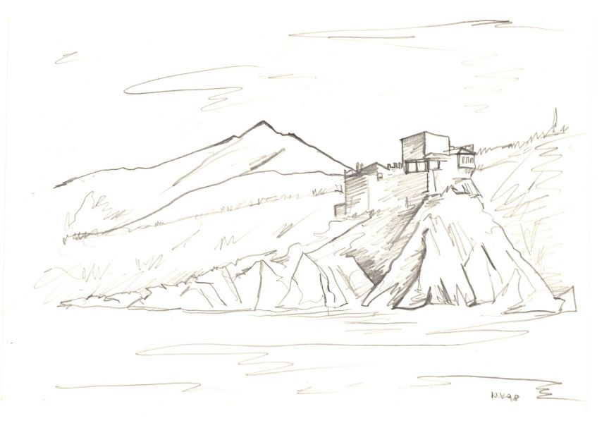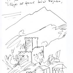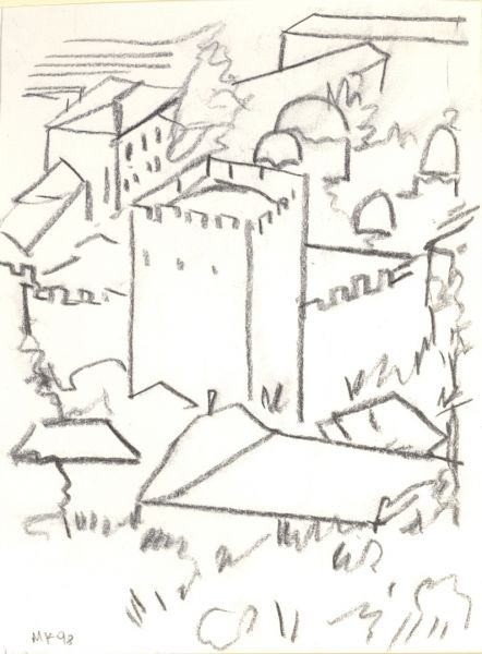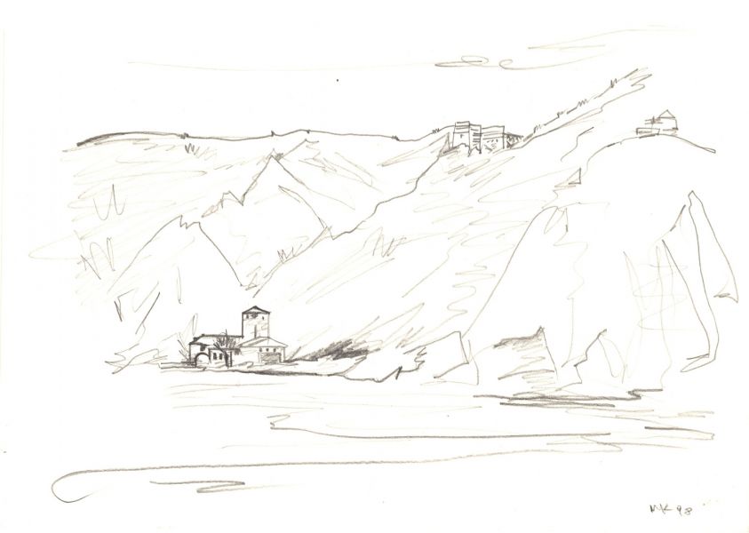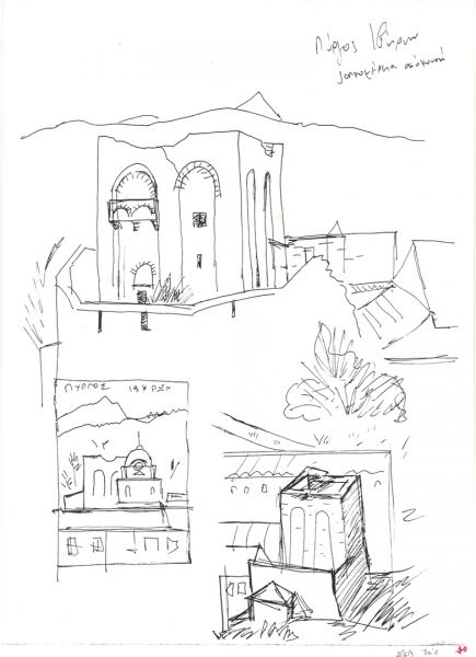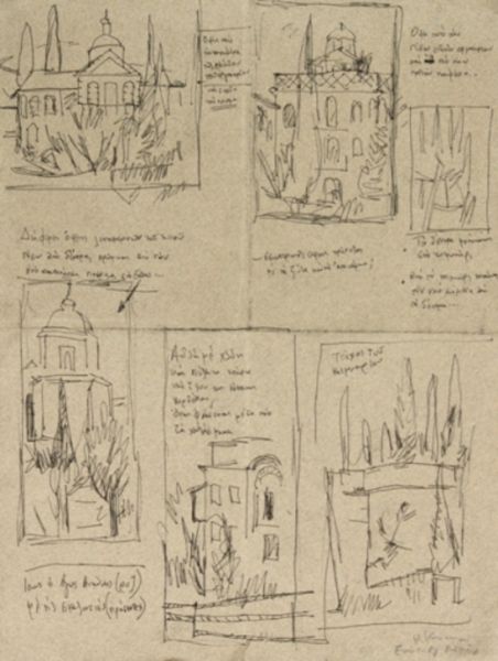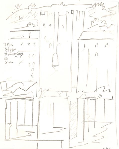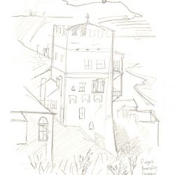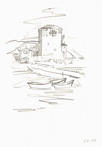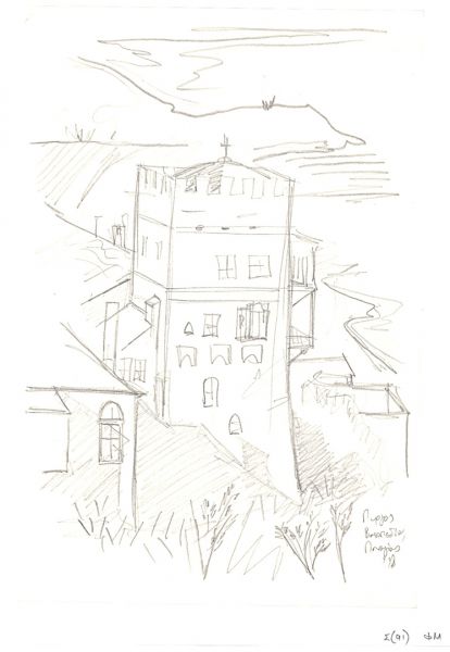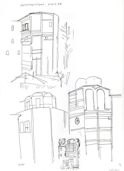 Η σειρές των Αγιορειτικών χαρακτικών (Οι Πύργοι του Αγίου Όρους, Μονή Ιβήρων και Σκήτη Αγίου Ανδρέα) βασίστηκαν σε πολλές φωτογραφίες και σχέδια που έγιναν κατά τις απαραίτητες περιοδείες στον Άθω. Επιλογή από τα προκαταρκτικά σχέδια με μολύβι, κάρβουνο και μαρκαδόρο (1995-2000).