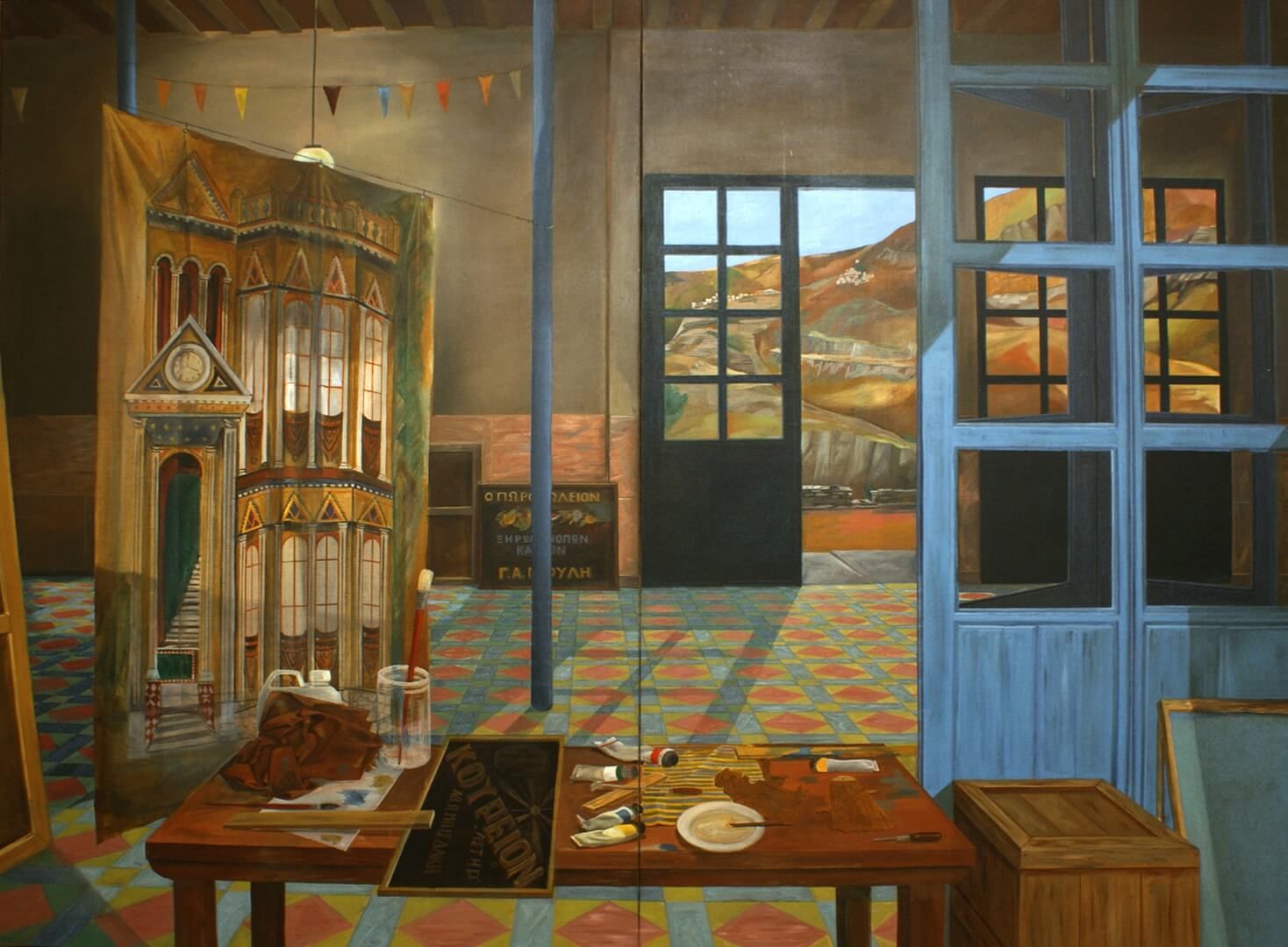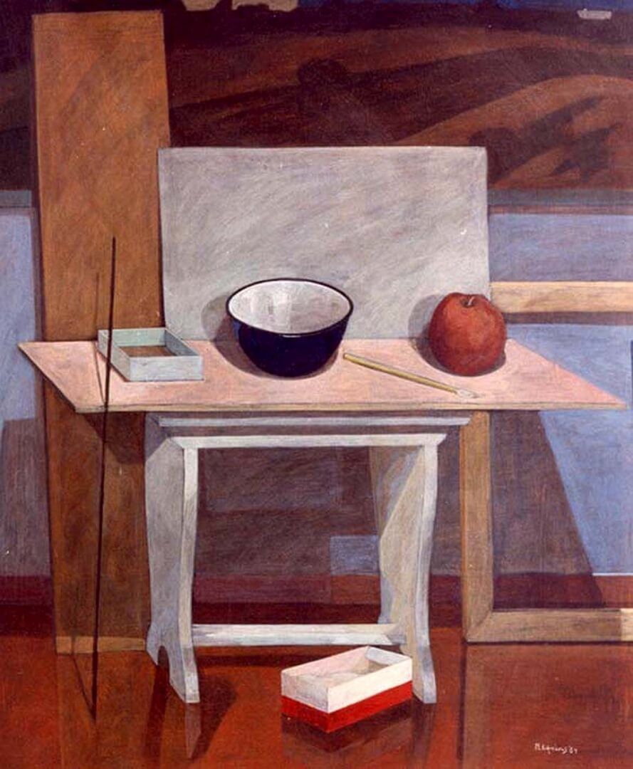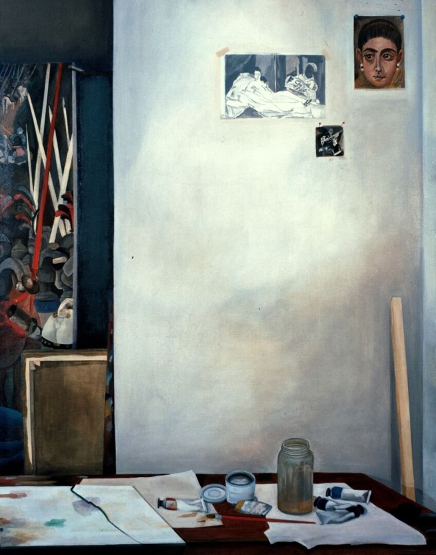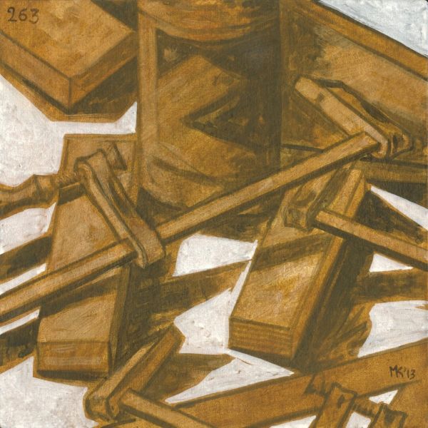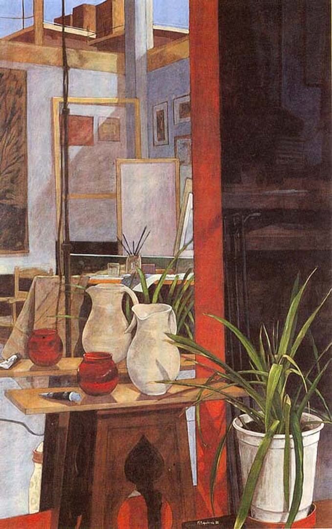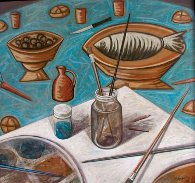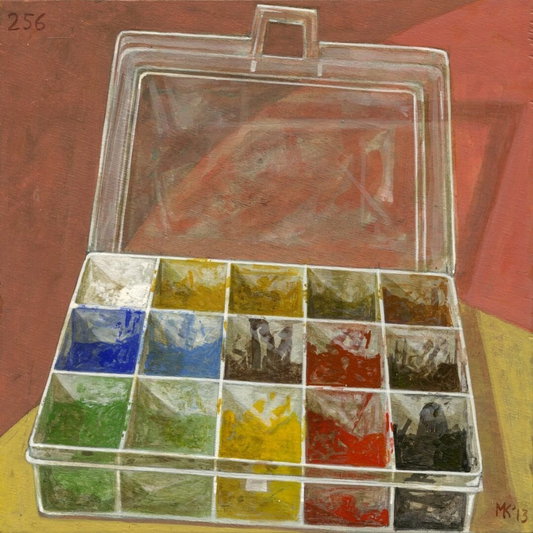 Ο κόσμος του εργαστηρίου, πραγματικός η και ιδεατός, καθώς και τα υλικά ζωγραφικής, αποτελούν συχνά ένα από τα αγαπημένα θέματα του Μ.Κ. μια και πάντα ενδιαφερόταν για την διαδικασία της ζωγραφικής αναπαράστασης. Έχει χαρακτηριστεί και ως «φετιχιστής» των υλικών. Στην επιλογή εδώ παρουσιάζονται κυρίως παλαιότερα έργα. Στη σειρά «365» επίσης περιλαμβάνονται πάρα πολλά έργα με παρόμοια θεματολογία.