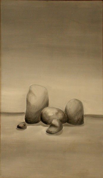 Πολλά από τα έργα του τελευταίου έτους σπουδών στο St Μartin’s School of Art απετέλεσαν τον κορμό της πρώτης ατομικής του έκθεσης πού έγινε το 1979 στο Πνευματικό και Καλλιτεχνικό Κέντρο ΩΡΑ στην Αθήνα (βλ. Εκθέσεις).