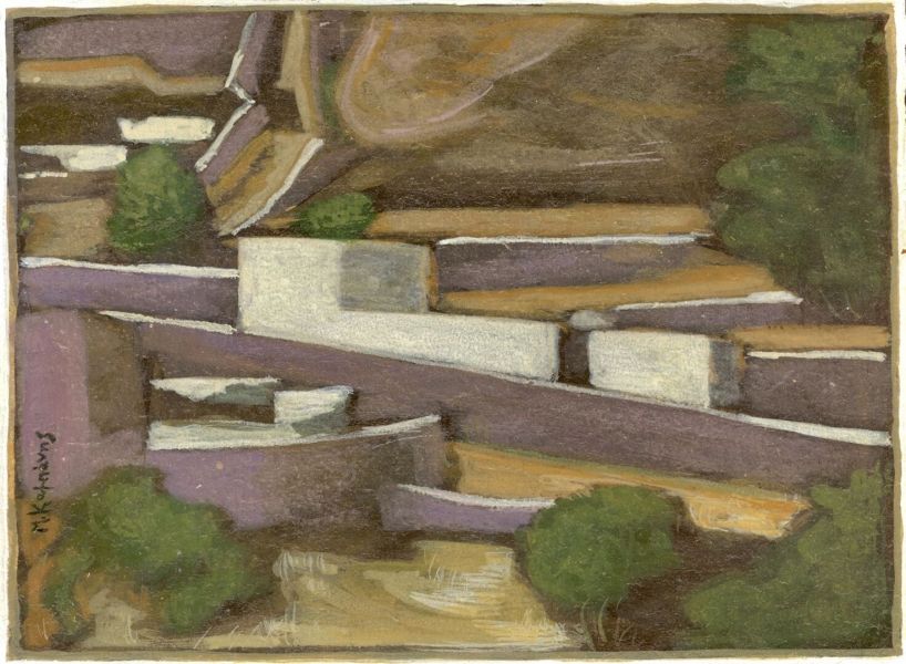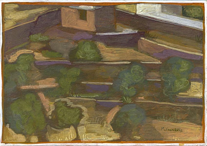 Το τοπίο είναι ένα αγαπημένο θέμα του Μ.Κ. είτε το βλέπει σαν αυτόνομο έργο είτε αρκετά συχνά σαν τμήμα μιας μεγαλύτερης σύνθεσης.
