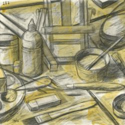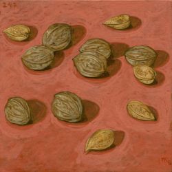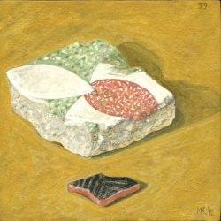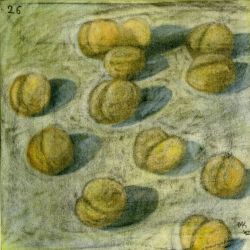The 365 works where painted from May 2012 to May 2013, without any stylistic, subject matter or technical limitation. The only obligation was dimension and the effort to complete one work per day. The works are 20x20 cm and 20x25 cm. They have been created with a vast variety of techniques: mainly acrylic on wood but also drawings with pencil or charcoal, casein or silicate paint on mortar, monotype, true fresco as well as photography or digital printing.